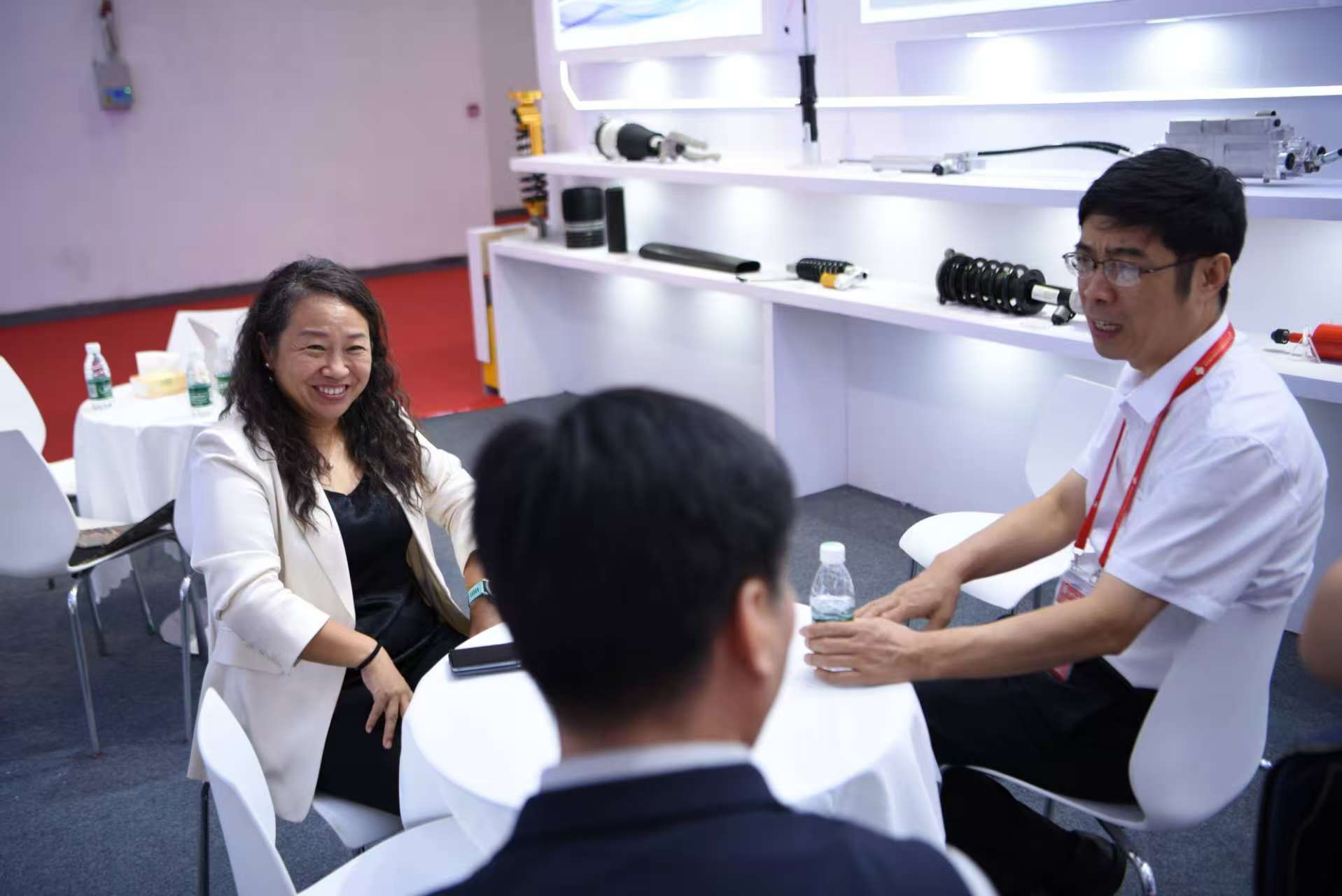 圆桌会议:在 “河南-境外驻京商务机构对接会” 上,淅减副总杨玮霞向多国商务代表分享淅减国际化路径,并在现场针对境外商务机构的需求,直接亮出自己的回应,并与西班牙纳瓦拉投促局技术总监乌奈·伊里戈延现场热烈探讨,希望探索在轨道交通及中高端乘用车领域的减振器配套合作。